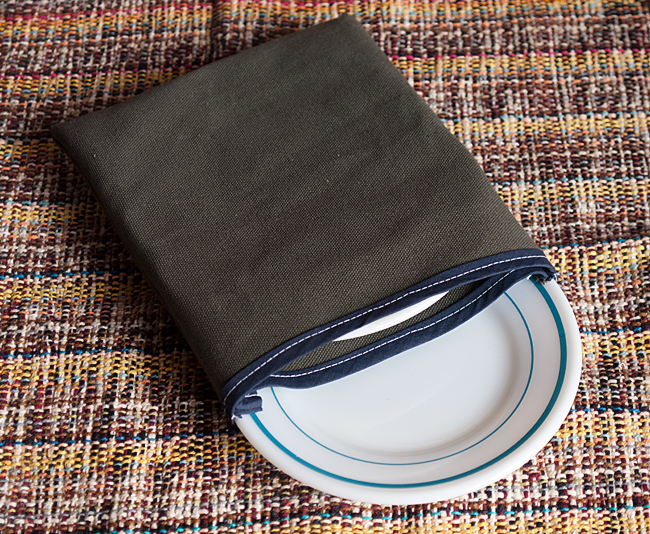 この食器に関しては8号帆布でピッタリサイズの収納袋を作っています。