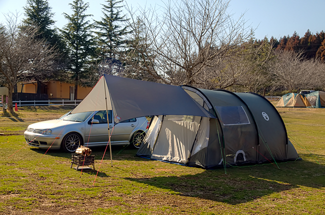 この日はけっこう寒いという予報でしたのでCoastline4を使用。A siteの管理棟の前あたりに設営しました。
