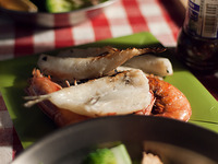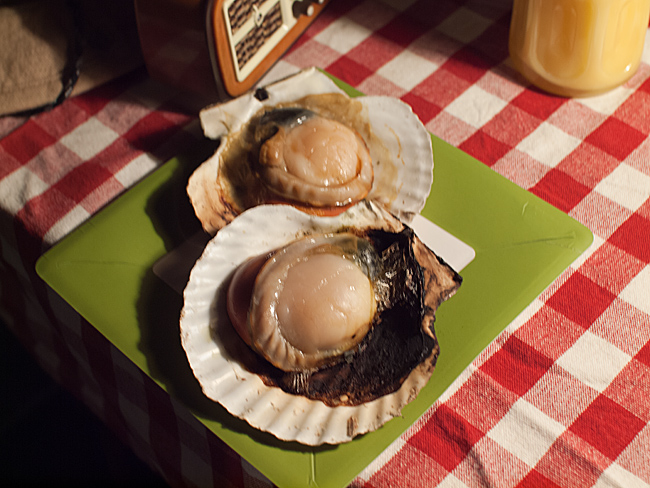 夕食はホタテ、赤エビ、フグの一夜干しをグリルで焼いて、エリンギを入れたラザニアとガーリックトースト、デザートは千葉県産のイチゴでした。