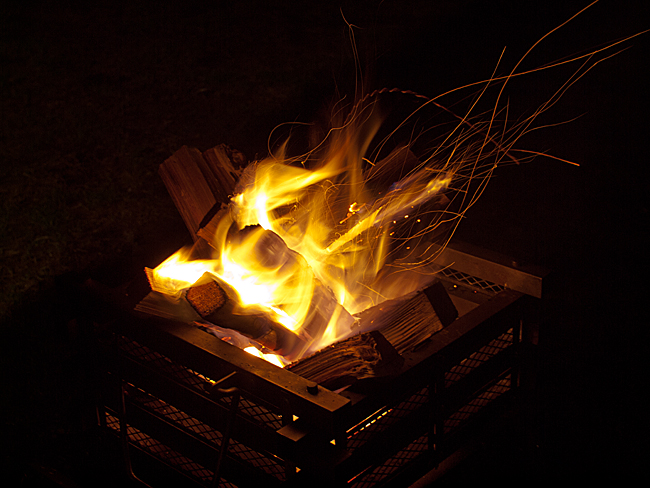 調子に乗って撮影してたら火の粉が竹チェアに(汗 5mmくらいの穴が2個できてしまいました。