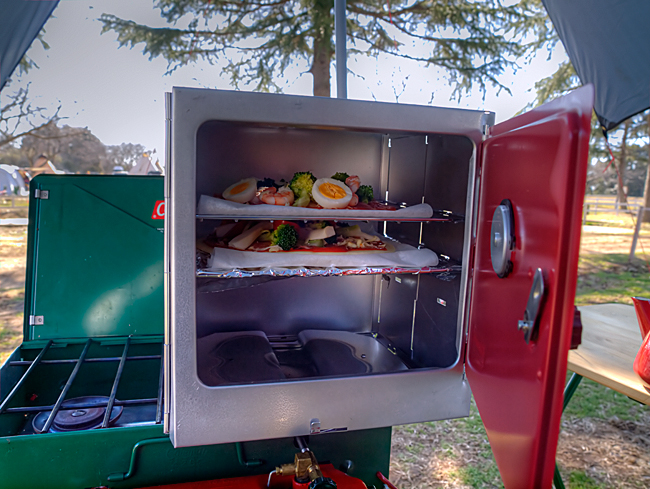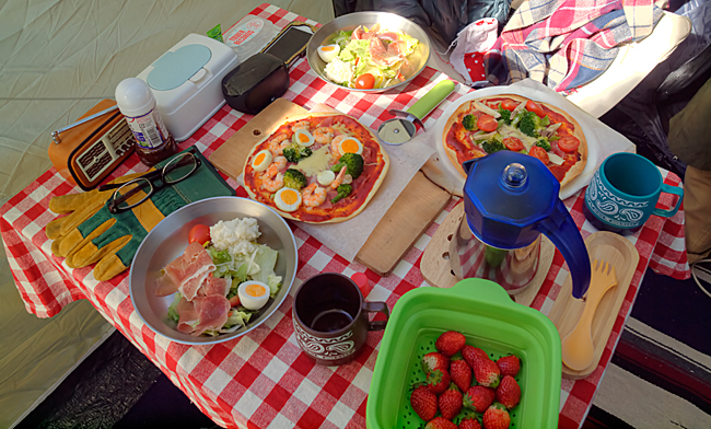 朝食はトレイが2枚付属のCAMP OVENでピザの2枚焼きにチャレンジしてみました。