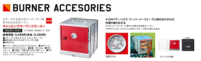 Coleman CampOven 復活 2013年1月23日 / 16件のコメント ご存知の方も多いかと思いますが、10年以上の歳月を経てColemanのCAMP OVENが再販される事になりました。 シルバーカラーにドアは赤の塗装がされています。 価格も昔に比べたらリーズナブルだし、ケース付き。 オーブン料理は楽しいので是非♪ Coleman(コールマン) キャンピングオーブンスモーカー
