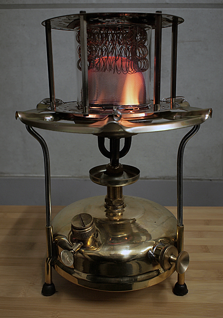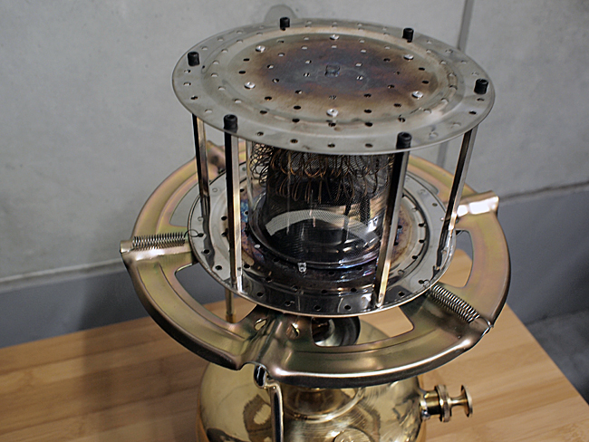 このストーブは3本のゴトクにトッププレートを載せて使用しますが、風防を兼ねた意匠がヒーター用に良さそうなのであります。