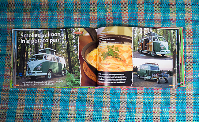 主にVW Type-2 BUSを使ったキャンプシーンに一つの料理が掲載されたもので見開きページ毎に異なるシーンが掲載されています。(T3,T4,T5も少し載ってます。)