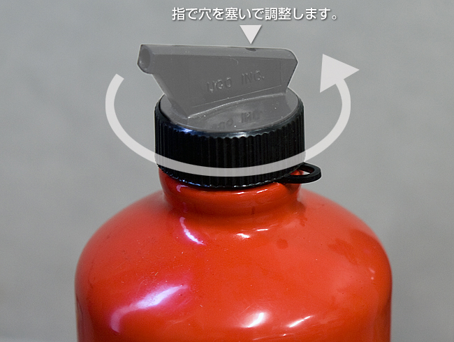 これは、ボトルキャップの内側に注ぎ口があり、緩めて燃料を注ぐ構造になってます。