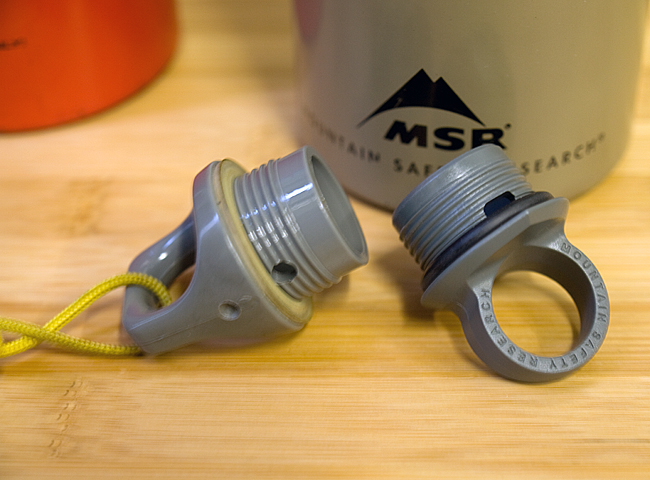 右のMSR Millitary Fuel Bottleは最近入手したものです。これの方が背が高いですが同じ33oz.