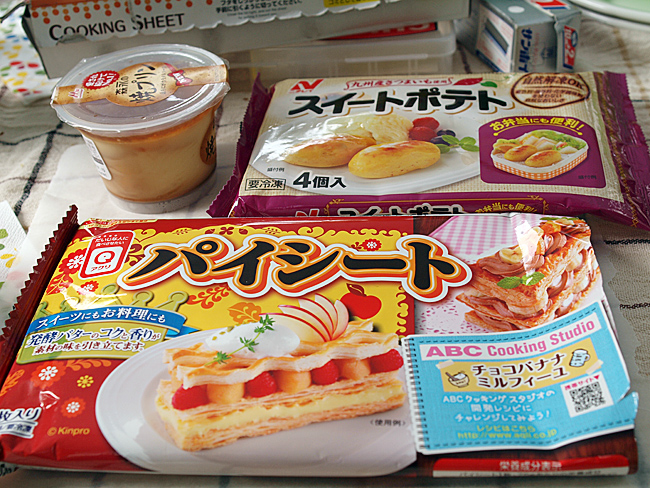 冷凍パイシートを使った温かいデザートもいくつか作りましたが、今回は森永の焼きプリンと冷凍スイートポテトを使ったパイを作りました。