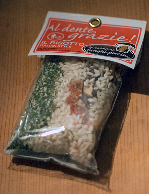 ポルチーニ茸のリゾットはパッケージで買ったものにシメジを追加。