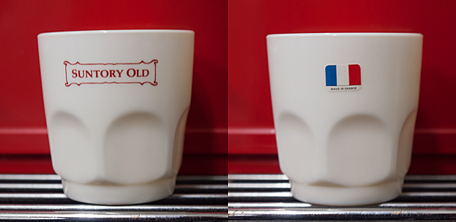 ここではSUNTORY OLDのノベルティ、フランスARCOPAL社のミルクガラスのカップを購入しました。