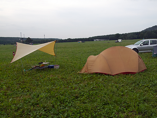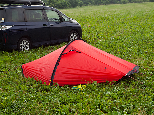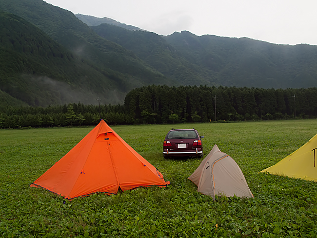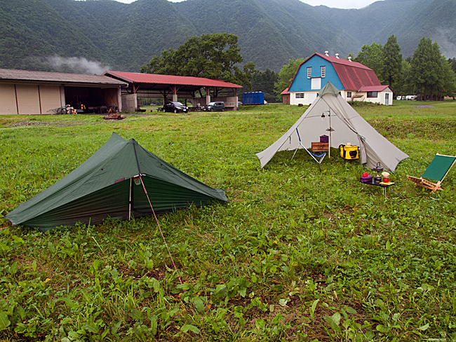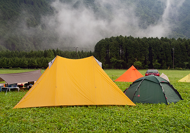 そして自分。普通なら中で立てるテントが好きなんですが、今回はソロという事でアメリカのTexsport Willowbend Trail Tentという昔ながらの三角テントを持って行きましたが、想定外の雨と寒さでこの選択はちょっと失敗。