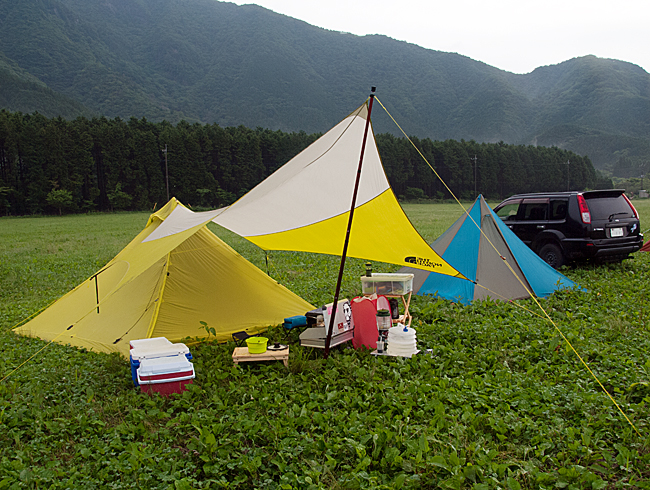 大きなタープを持って行かなかったのでhihiさんとこを間借りさせていただきました。有難うございました。