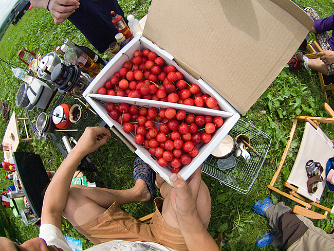 翌朝はもじゃ君から高価なさくらんぼの差し入れ。美味しかったです♪