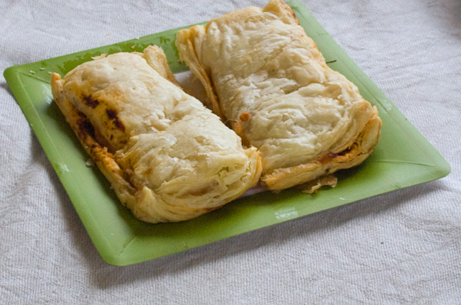 hihiさんの自家製味玉にチャーシュー、tame0521さんのオイルサーディンの醤油煮、ホニコさんのタコライス、自分が冷凍パイ生地にピザソースにスィートバジルとソーセージとチーズを挟んだだけのパイを作りました。