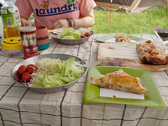 いや〜、凄い料理ですね〜。とくにキッシュが美味しそう^^。ウチもそろそろキャンプに慣れてきたので、料理を充実させたいと思ってます。今度是非ご一緒して見学させてください。そしてお裾分けしてください(笑)。