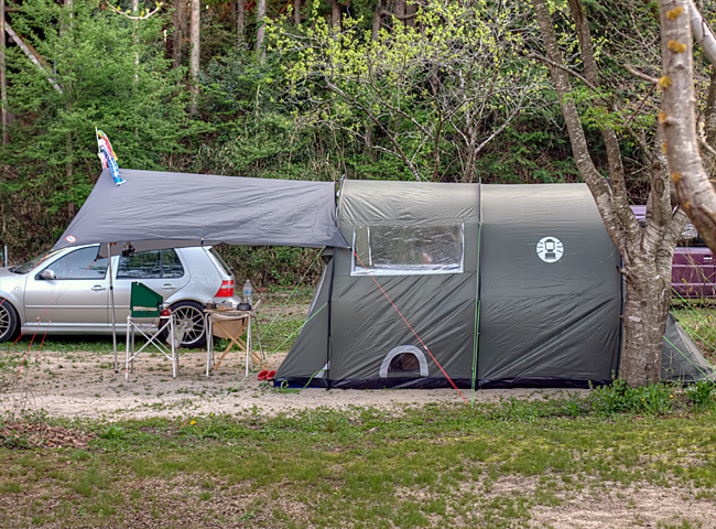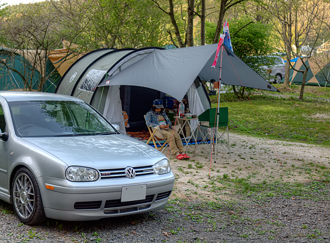 設営したのは電源有りの広々サイト。GWだというのに両隣は空いてました。