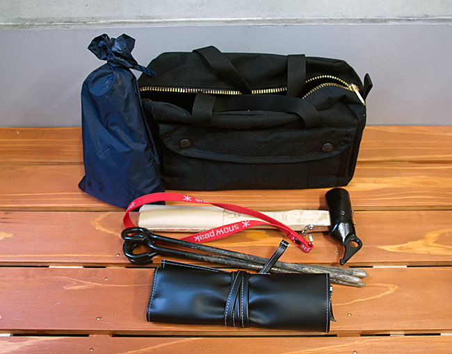 設営用具入れも色々と探しましたが、無難に米軍のツールバッグにしてみました。
