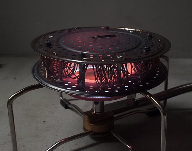 UNIFRAME US-1000で使うとこんな感じです。ゴトクに載ってるのはDAISO グッヅで作ったヒーター(笑