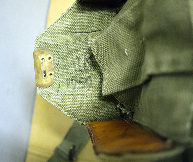 ベルギー軍のガスマスクバッグ(USED)で1959という刻印があります。