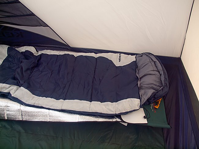 BYER AL Cotに銀マットを敷いてSnugpakのNavigatorで寝たのですが、普段家で寝るようなかっこで寝たらちょっと寒かったです。奥さんはシュラフ内にマイクロファイバー毛布を入れていたので全然寒くなかったらしい。