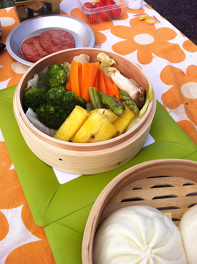 蒸篭がちょっと嵩張りますが杉の香りが蒸した野菜にほんのり付いて持って行って良かったです。