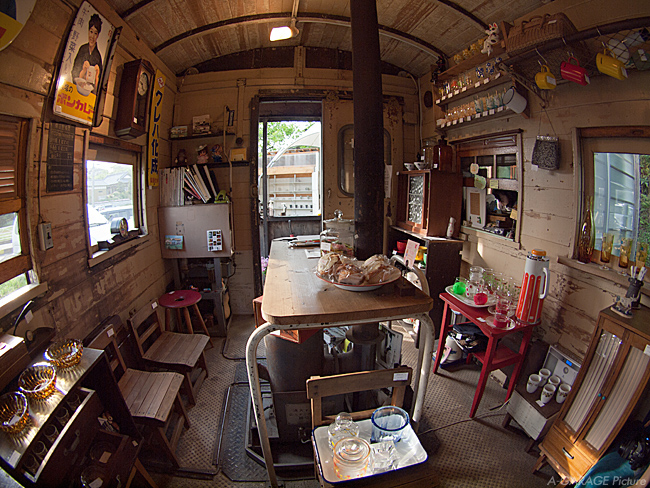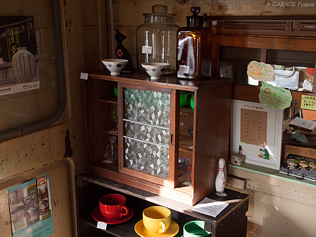 廃棄された貨物車量の車掌車を改装したカフェギャラリーの「かしゃま文化会館」。