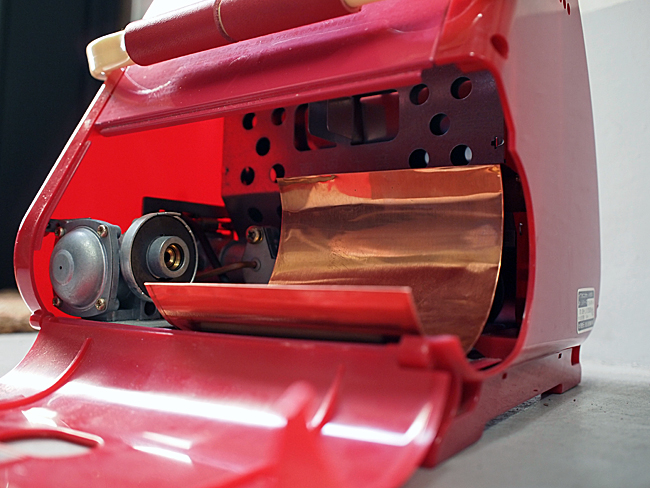 そこでカートリッジウオーマーを付けてみました。たまたま家にあった0.1mm厚の銅板を使って反射板とカートリッジを繋ぐように加工してみました。直接炎から熱伝導する訳ではないので効果があるか分かりませんが現地で確かめてみます。