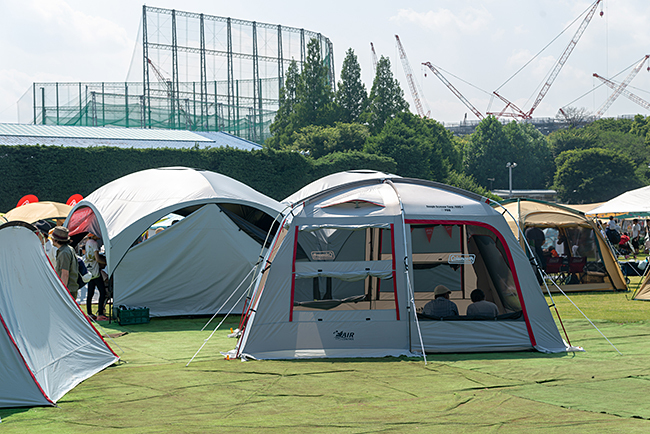 夏に向けたアイテムとしては日光を遮るDARK ROOM TECNOLOGYのテントを押しているようでした。