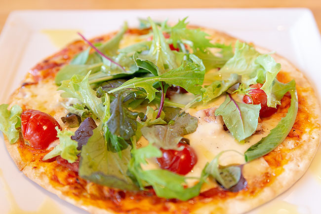 週末メニューからベビーリーフとフレッシュトマトのマルゲリータピザ