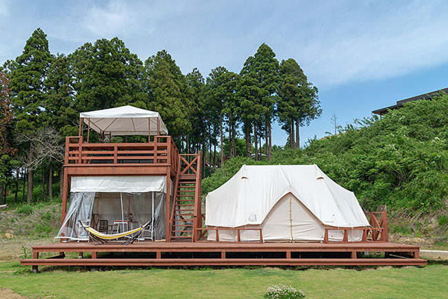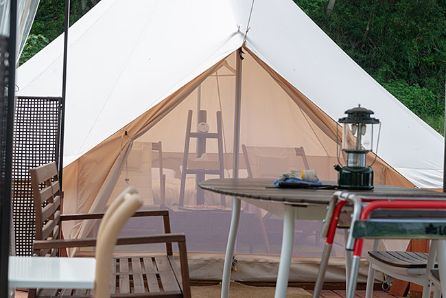NORDISK アスガルドを使ったリバーサイドはグランピングでは一番の安価設定で大人2名で26,600円〜。こちらも夕食のBBQ食材にTHE FARM CAFEでの朝食ビュッフェ付き、さらには温泉入り放題となってます。