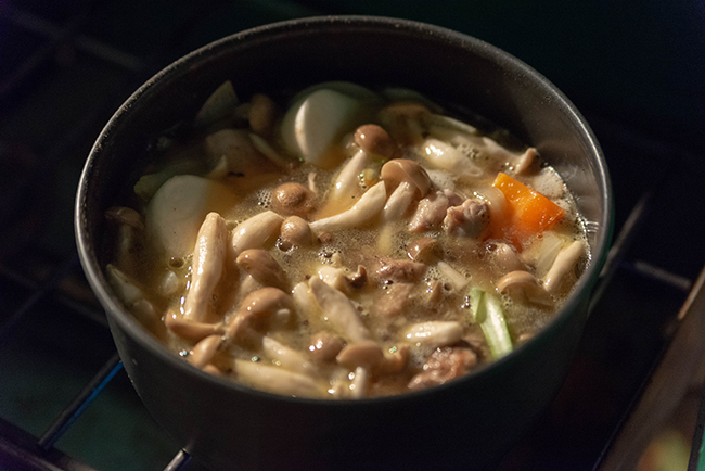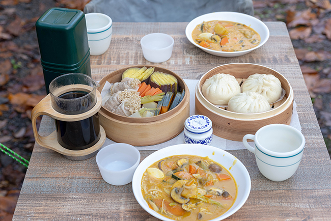朝食は昨晩の豆乳シチューに南瓜を多めにいれてパンプキンシチューにしたものと野菜のせいろ蒸しに肉まんです。せいろ蒸しは簡単で燃料消費も少なくてすむのが良いですね。