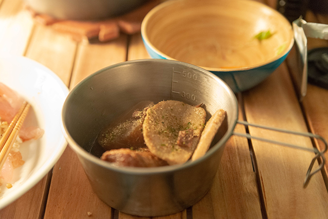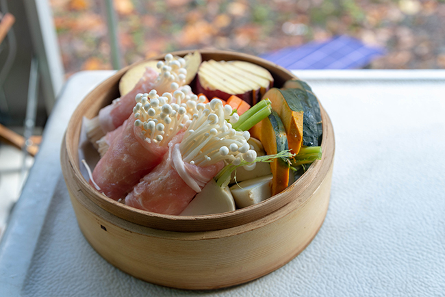 朝食はやはり野菜のせいろ蒸しと肉まんに豚しゃぶを少し。今回のキャンプはオーブン料理をやらなかったので2泊でも燃料消費はWGで1Lくらいだったんじゃないかな。