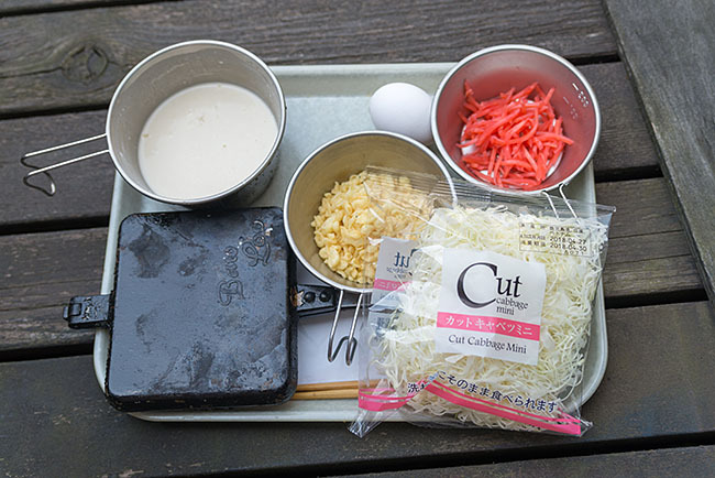 そんな日曜日のランチにベランダで箱ストクッキングでお好み焼を焼きました。