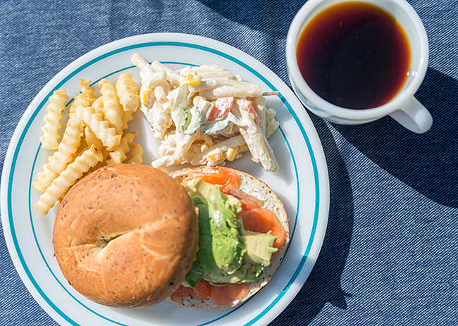 ベーグルサンドの具材はもう少し工夫したいですね。