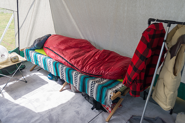 テント内結構広いのですね~ コット使いがおしゃれです!