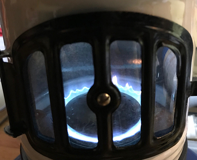 Valorストーブでよく青火にならなくてお悩みの方が多いみたいですが、灯油を最後まで使い切るとWickの先端が焦げてカーボンが付着するのが原因です。キッチンペーパーなどで拭くだけでも復活する場合もありますが、酷い場合はカットしてしまいましょう! できれば灯油が無くなる前に補充するのが良いようですが、64のシリーズには油量計が無いので難しいですね。