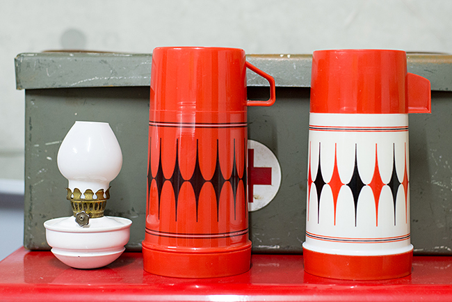 水筒はAladinのHalf Pintの物でダイヤ柄の赤黒パターンというのを探していて良いコンディションの魔法瓶に巡り会えました。