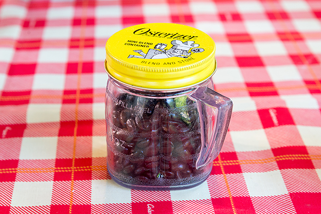 コーヒー豆はアメリカのミキサーメーカー Osterizerの本来はソースなんかをミキシングするミニ ブレンド コンティナーを使ってます。密閉性が良くてコーヒー豆にも良いです。これもヴィンテージ。