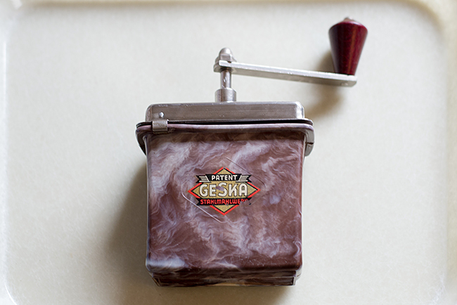 コーヒーミルはドイツ製 Geska Qualitatの携帯用ミルを使ってます。これも古い物で1950年代かな?容器がベイクライト製で切れ味抜群です!