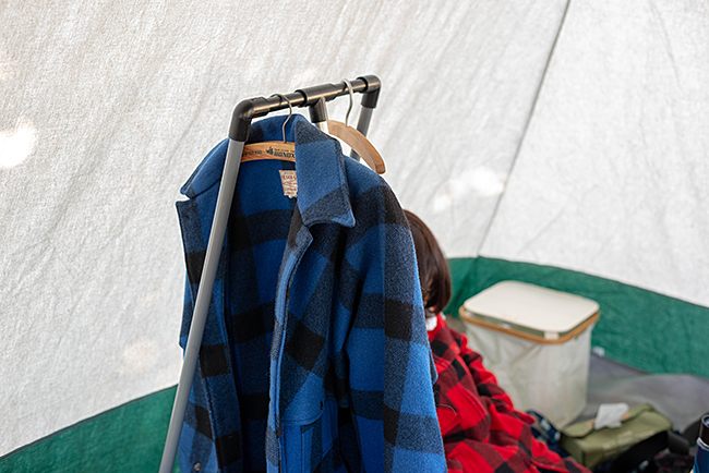 今回はコタツにはしませんでしたが、テーブル下にブランケットを広げて豆炭アンカを入れたところに足を入れると暖かいです。テント内は全面に起毛のマットを敷いてリビング部分には更にインディーコットンのラグを敷いてます。このブランケットはアクリル素材かな