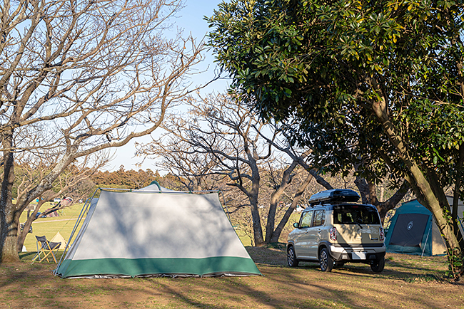 この時も手前側の丘上サイトでしたがフリーサイトは片手で数えられるほどのサイト数、今年は1月とは思えないサイト数です。
