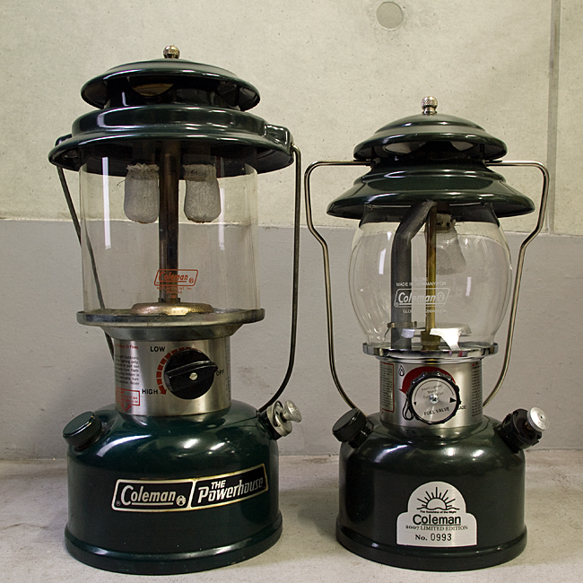 左は17年前に購入したPowerhouse 290A、右は最近購入した2007 Coleman Heritage Lantern。