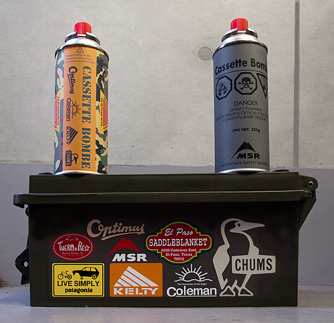 それと最近、MSRのMILITARY FUELL BOTLEの格好良さに惚れてカセットボンベ仕様なラベルもアレンジしてみました。